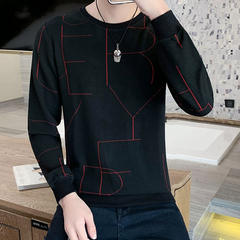 Mùa thu đông mới áo len cổ tròn phiên bản nam Hàn Quốc của xu hướng áo sơ mi đáy cộng với áo len cộng với chất béo - Kéo qua