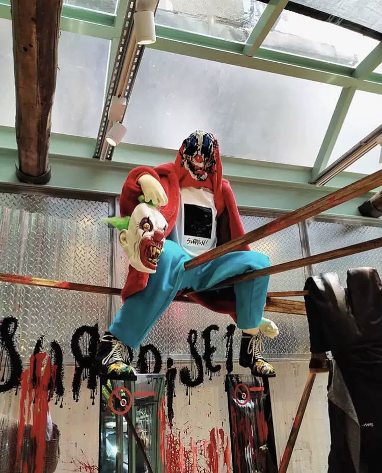 Áo len kẻ sọc Spotlet FW19 áo len phiên bản lỏng lẻo màu đỏ và đen nam và nữ áo len mặt đáng sợ - Kéo qua