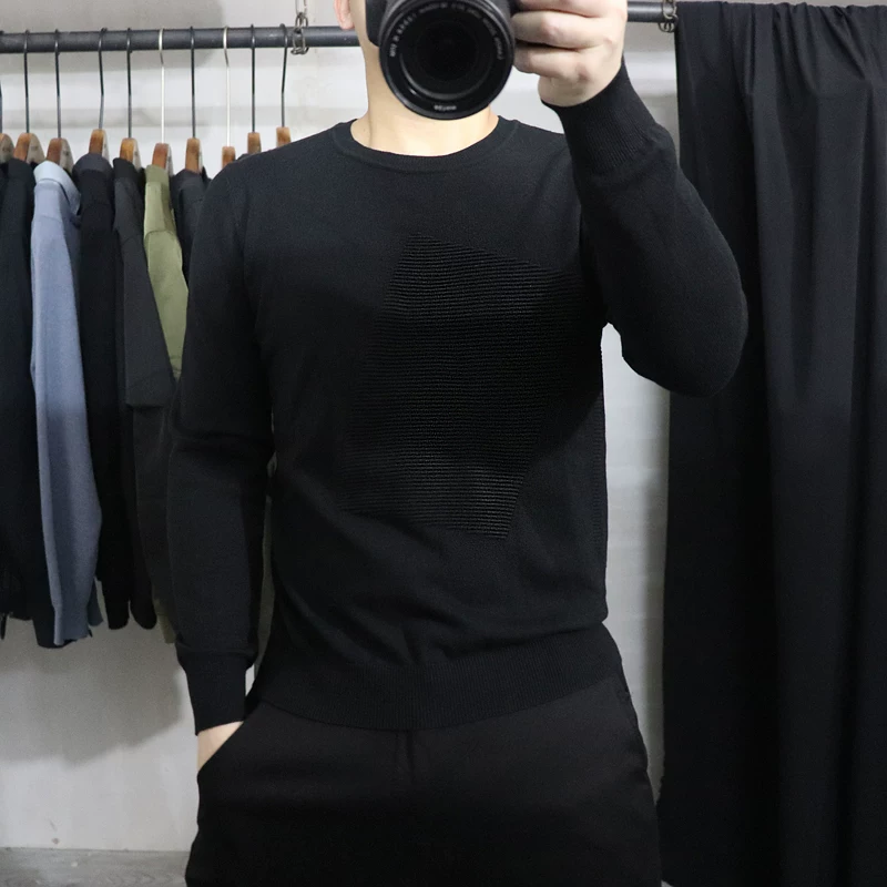 Mùa thu mới phong cách playboy dệt kim chạm đáy áo len nam phiên bản Hàn Quốc của áo len mỏng cổ tròn màu trơn áo len xu hướng - Kéo qua