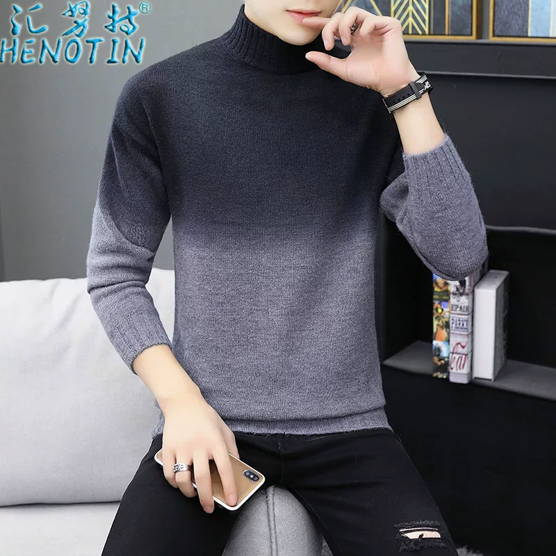 Hui Nute đích thực mùa thu mới thanh niên cao cổ áo len gradient áo len áo thun nam Hàn Quốc giản dị - Kéo qua