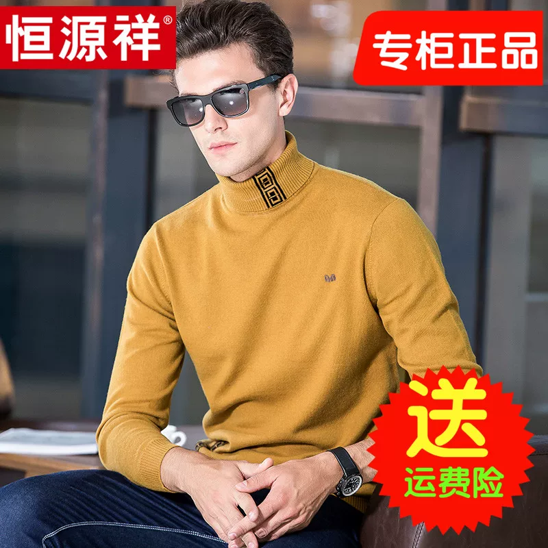 Áo len nam Hengyuanxiang mùa thu nam mùa đông mới màu rắn áo len cao cấp tất cả len áo len dài tay - Áo len