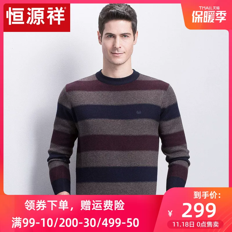 Áo len nam Hengyuanxiang dài tay cổ tròn áo len nam áo len sọc - Áo len