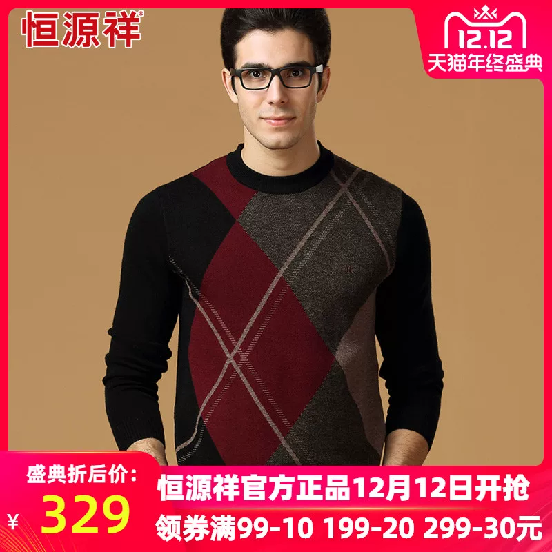 Áo len len cổ tròn nam Hengyuanxiang mùa xuân và mùa thu áo len mới len kết hợp áo len ấm áp nam - Áo len