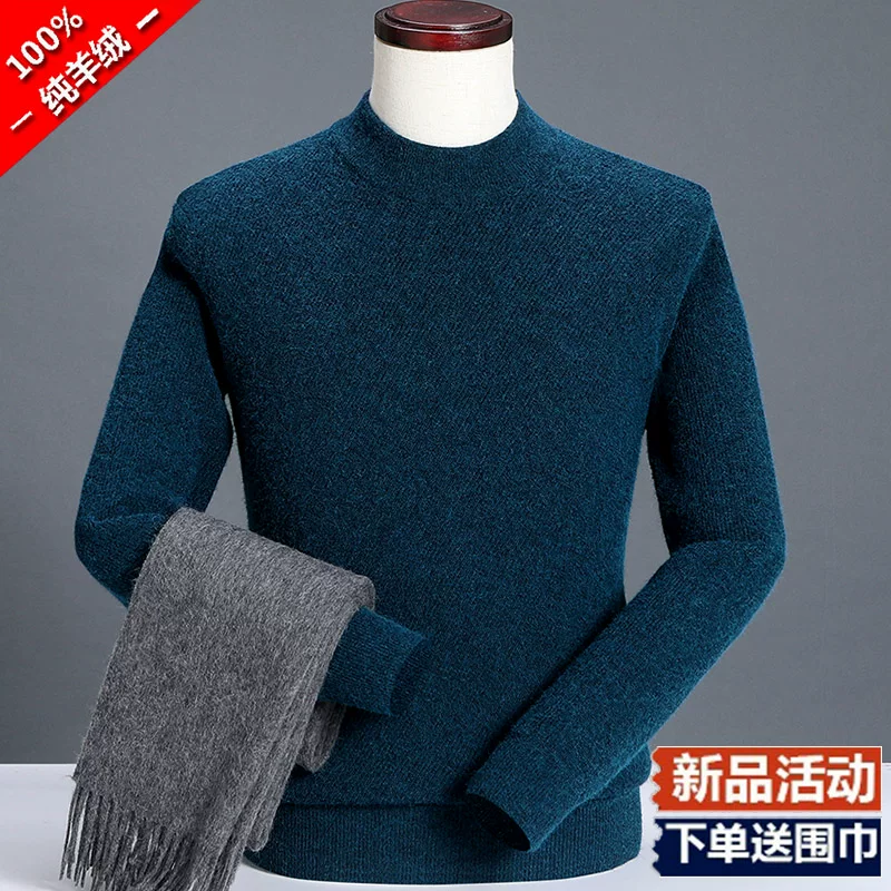 Áo len cashmere nửa cao cổ mùa thu và mùa đông mới nam áo len cashmere cổ tròn tinh khiết áo len nam trung niên cha dệt kim - Áo len