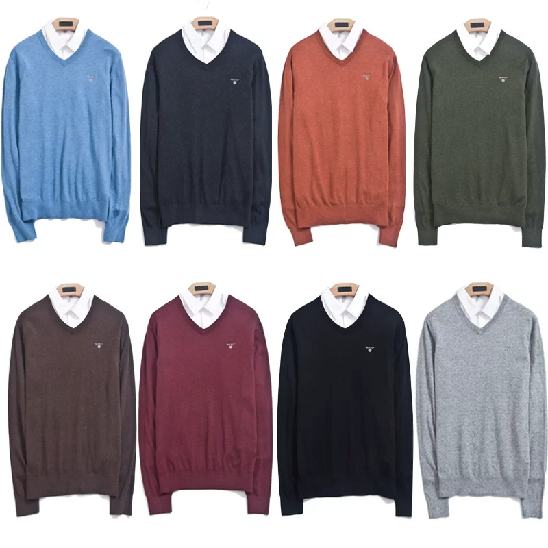 Áo len len nam cổ chữ V mỏng cổ áo len ngọt ngào cổ áo len công sở giản dị cho nam áo len đáy dài tay mùa xuân và mùa thu - Áo len