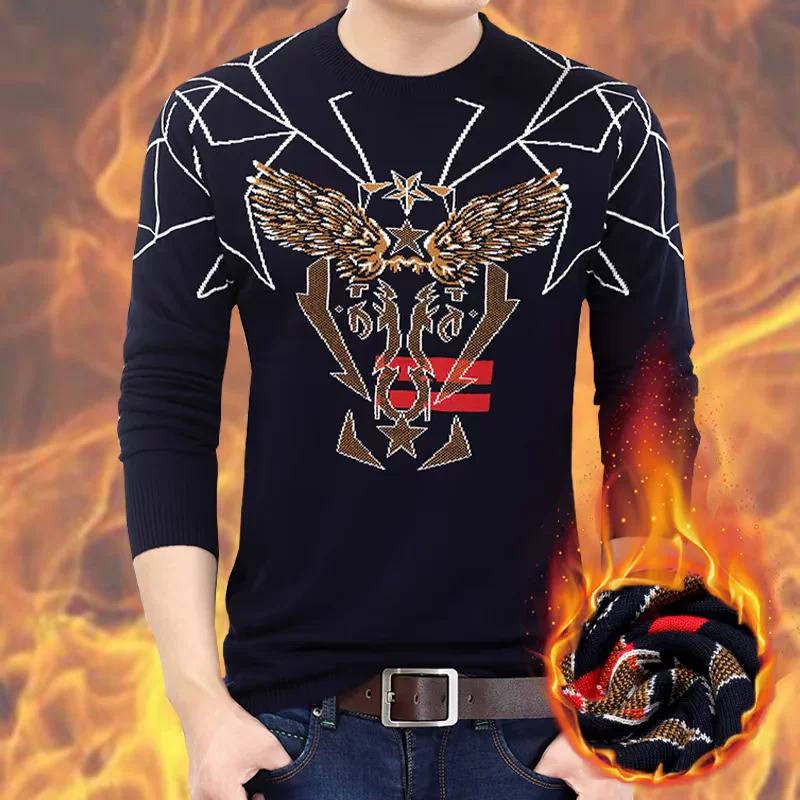 Áo len nam mùa thu đông cộng với nhung dày 2019 xu hướng mới Phiên bản Hàn Quốc của áo len cổ tròn dáng cá tính - Áo len
