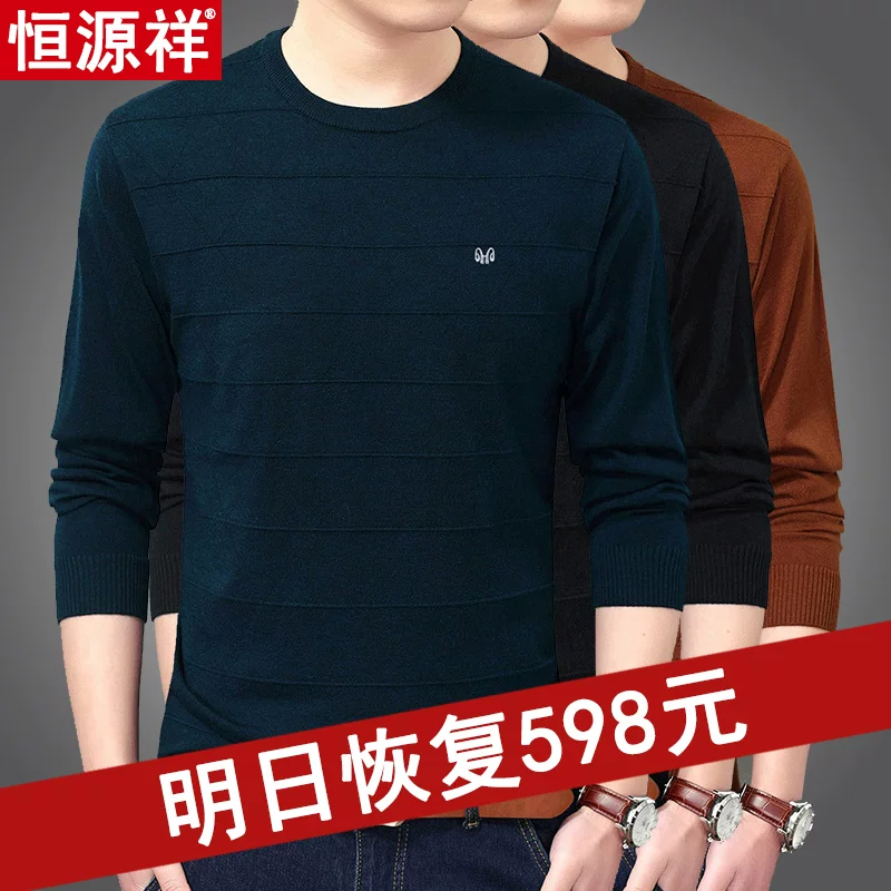 Áo len len nam Hengyuanxiang áo len mùa thu và mùa đông len nguyên chất áo len trung niên áo len tinh khiết màu áo len - Áo len