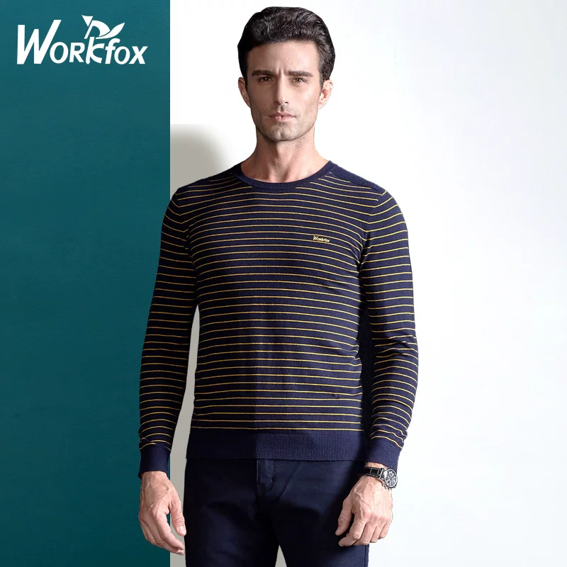 Hengyuanxiang mùa thu mỏng nam dệt kim len thời trang nam sọc áo len thanh niên cổ tròn áo sơ mi - Áo len