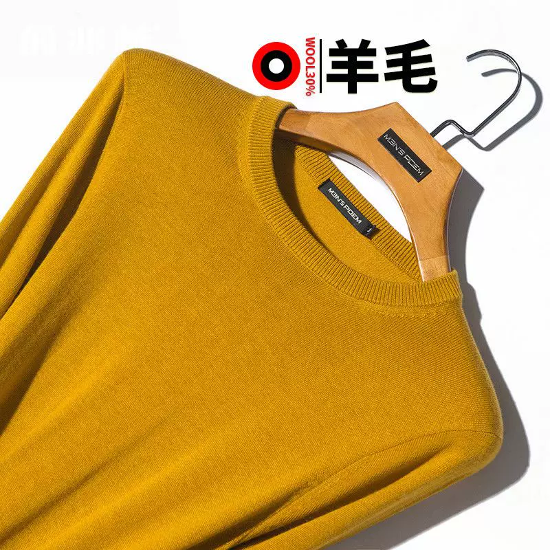 Mùa đông mới áo len dày nam áo len cổ tròn áo len len tinh khiết áo len giản dị Hàn Quốc Quần áo mỏng nam - Áo len