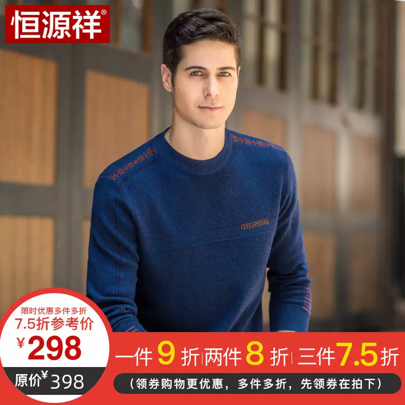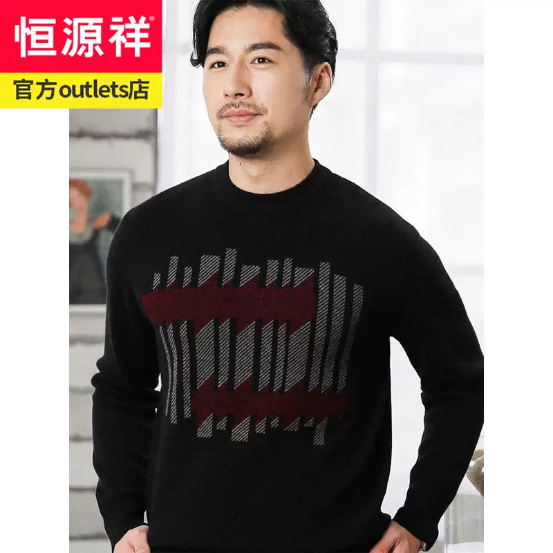 Áo len len Hengyuanxiang nam mùa thu đông mới kinh doanh áo len kích thước lớn tuổi trung niên cổ tròn áo len len nguyên chất - Áo len