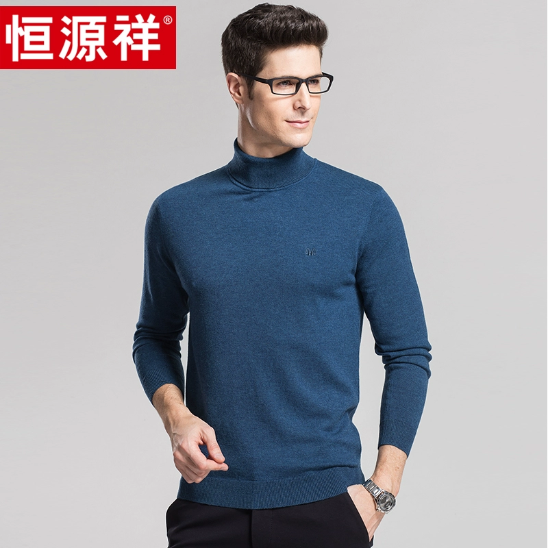 Áo len len cao cổ Hengyuanxiang Áo len nam mùa xuân và mùa thu Kiểu áo thun màu tinh khiết Áo len của cha trung niên Áo len dệt kim Áo len - Áo len