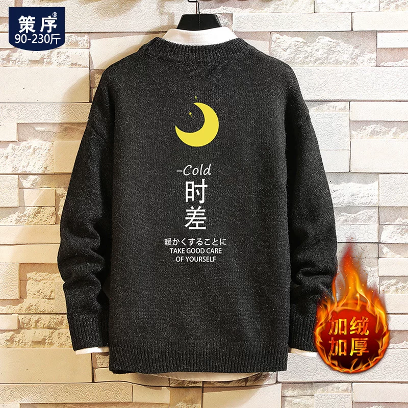 Áo len nam rộng cộng với nhung dày mùa đông cardigan cộng với chất béo cộng với xu hướng áo béo đáy quần áo len - Áo len