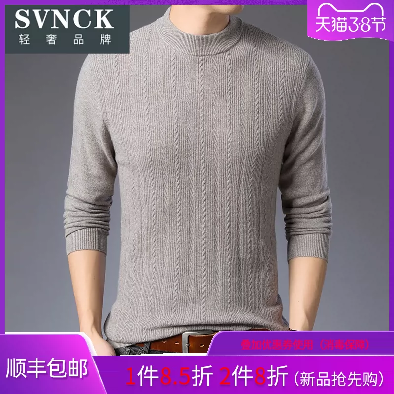 Quần áo nam hợp mốt 2019 mùa đông mới áo len nguyên chất nam đơn giản nửa cao cổ áo len dệt kim màu rắn - Áo len