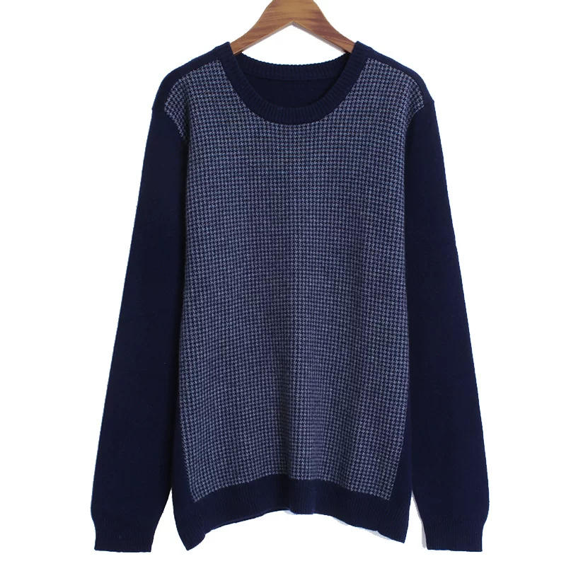 Áo len cashmere Erniman Ordos nam mùa thu / mùa đông cổ tròn áo thun houndstooth áo len bên trong dày - Áo len Cashmere