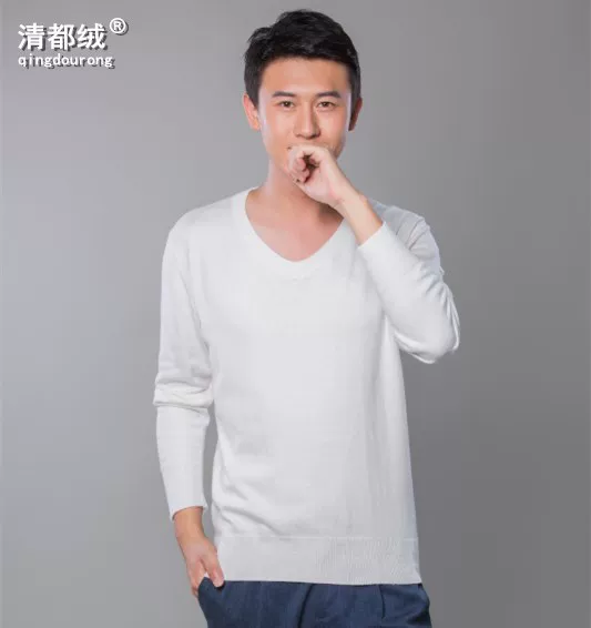Mùa thu và mùa đông mới áo len cashmere trắng tinh khiết áo thun nam cổ chữ V áo len thanh niên tự canh sát áo len dệt kim ấm áp - Áo len Cashmere