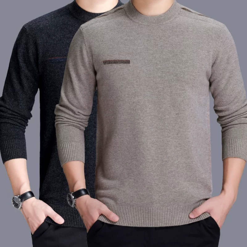 Áo len cashmere 100% nguyên chất cho nam ve áo anh chàng áo len nam cổ tròn nửa cổ cao len áo len dày bố - Cặp đôi áo len