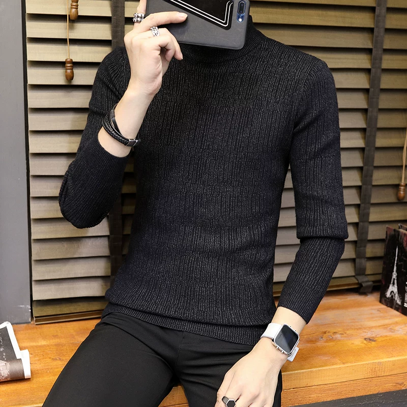 Mùa thu và mùa đông mới nửa cổ cao áo len dài tay màu rắn phiên bản Hàn Quốc của cổ áo nhỏ cổ cao nam trung cổ áo dệt kim chạm đáy cho nam - Cặp đôi áo len