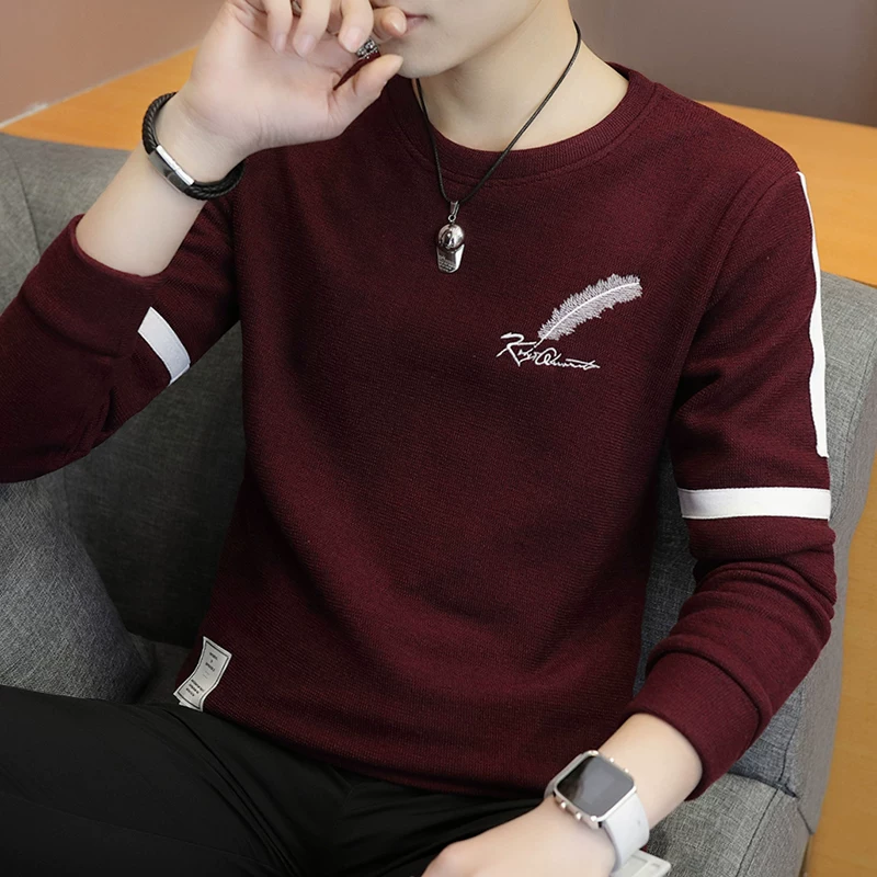 Mùa thu đông mới áo len cổ tròn nam Hàn Quốc cá tính nam mỏng áo thun dài tay áo len giản dị - Cặp đôi áo len