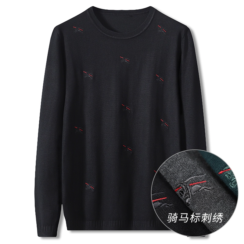 Mùa xuân và mùa thu nam thêu áo len dệt kim dài tay cộng với chất béo cộng với kích thước vòng cổ áo thun chất béo co giãn áo len nam - Cặp đôi áo len