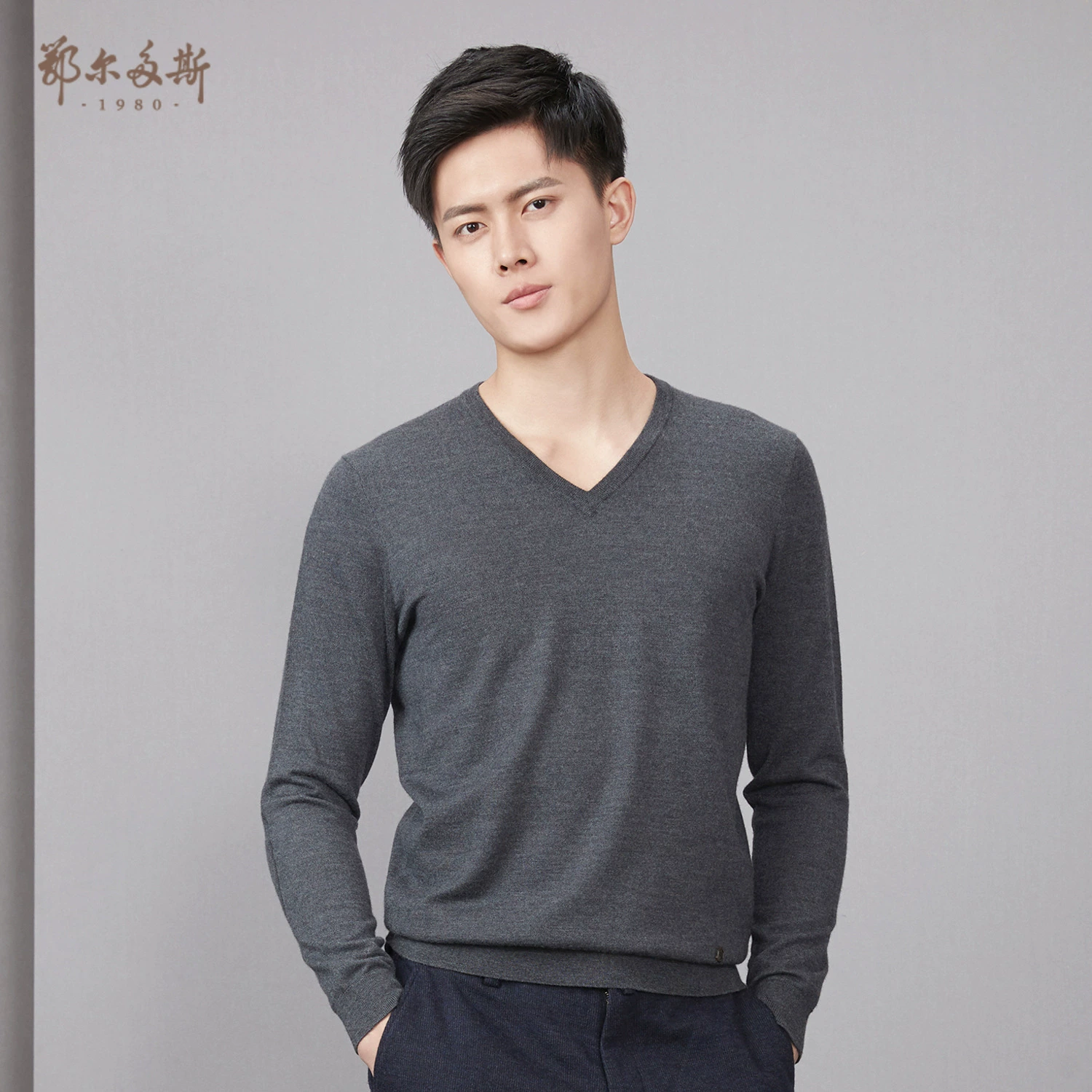 Ordos 198019 mùa thu và mùa đông sản phẩm mới tinh khiết cashmere V-cổ đơn giản áo len dệt kim nam C196A0114 - Cặp đôi áo len