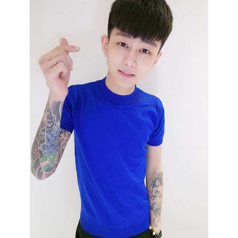 Tinh thần xã hội anh chàng áo thun ngắn tay nam len dệt kim mỏng tay nhanh tay lưới đỏ cùng một nửa tay áo 2019 xuân hè - Cặp đôi áo len