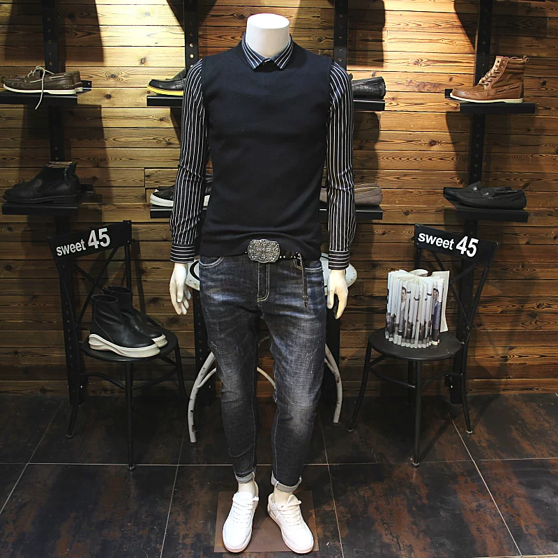 Mới phù hợp với thủy thủ mùa đông giả áo len len áo len đan áo len phi hành đoàn phù hợp với cổ chữ V đáy áo vest đồng phục đội trưởng - Cặp đôi áo len