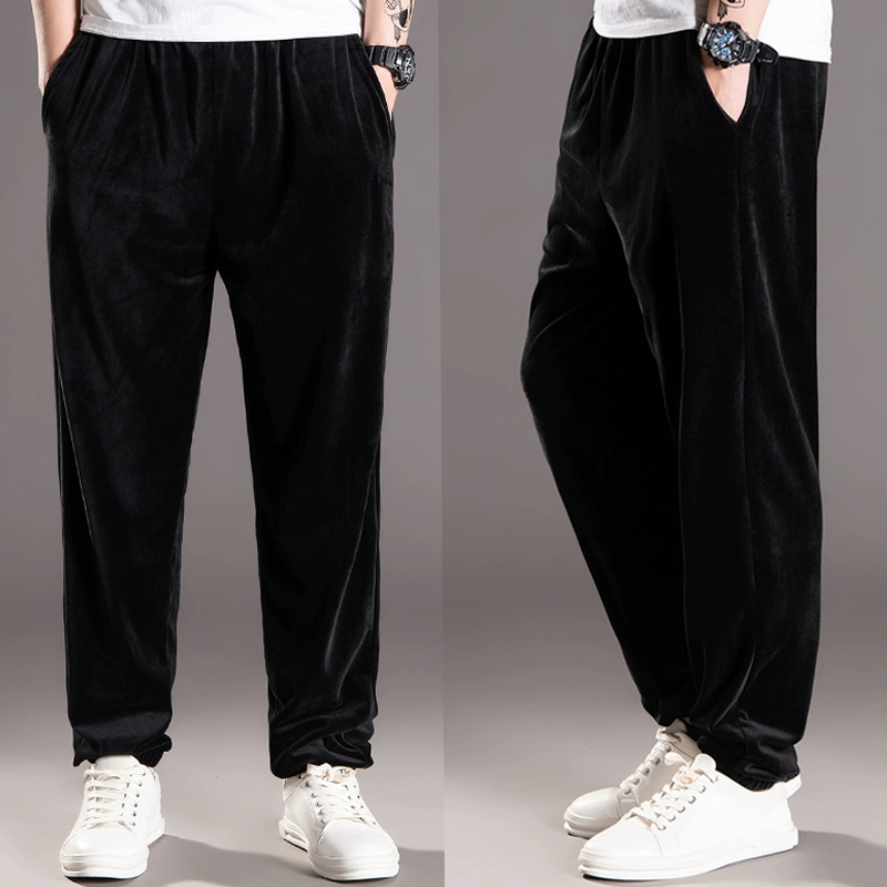 Quần nhung nam cộng với size thể thao parkour hip-hop đường phố lỏng lẻo anh chàng béo quần kín chân tập thể dục thủy triều - Quần Jogger