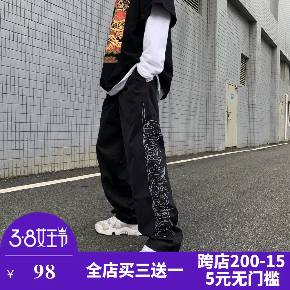 Đường phố phong cách ninja thêu gai rộng lỏng lẻo theo dõi quần cũ trường học retro hip-hop ván trượt quần giản dị - Quần Jogger