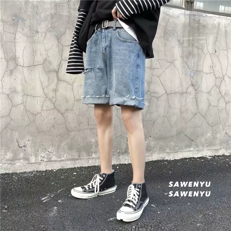 Zijun nam mùa hè burr lỗ quần năm điểm quần nam thủy triều denim nhẹ quần short xu hướng quần mỏng - Quần jean