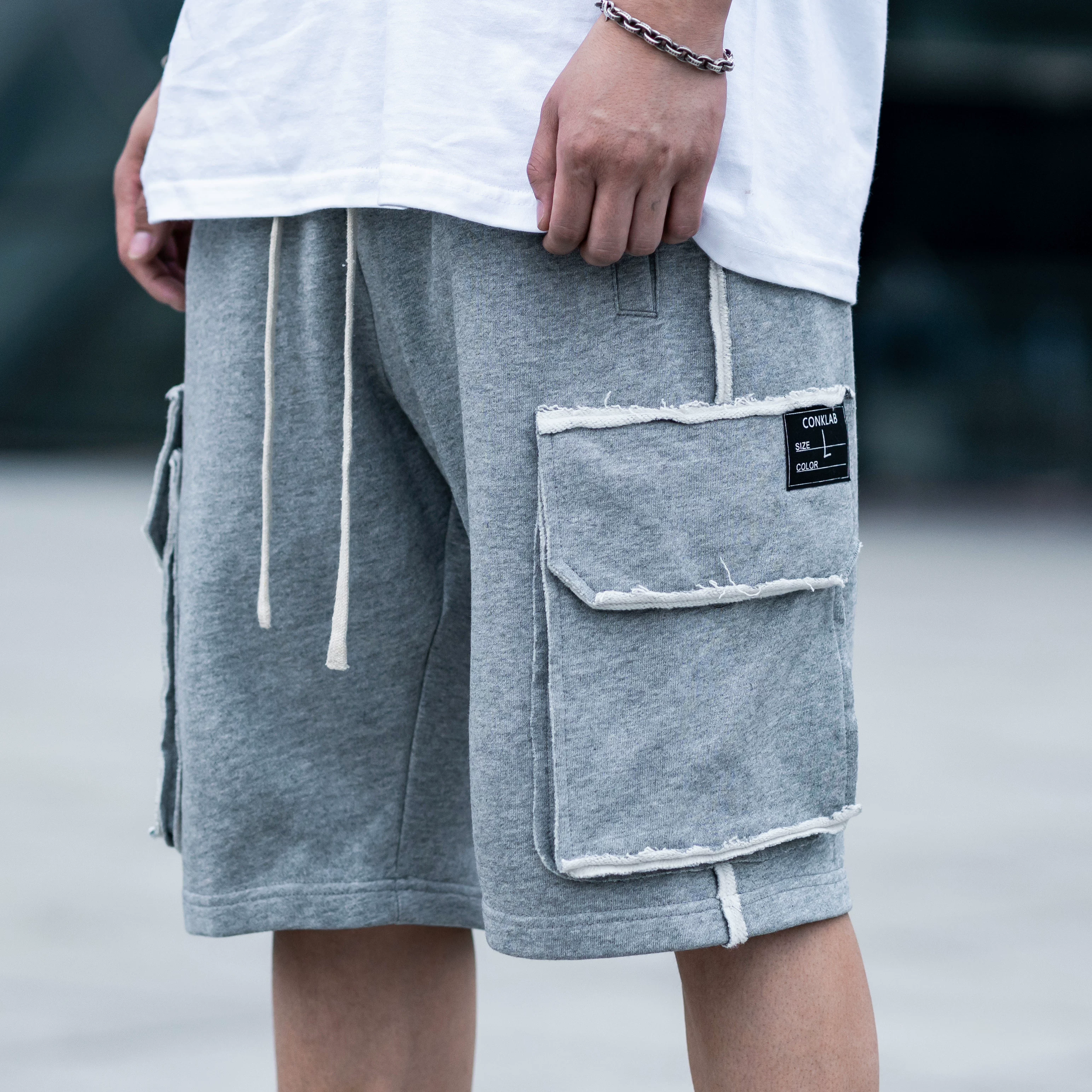 LKSTORE CONKLAB mùa hè lỏng lẻo ngược túi quần short thể thao dụng cụ quần năm điểm quần đi biển - Quần short
