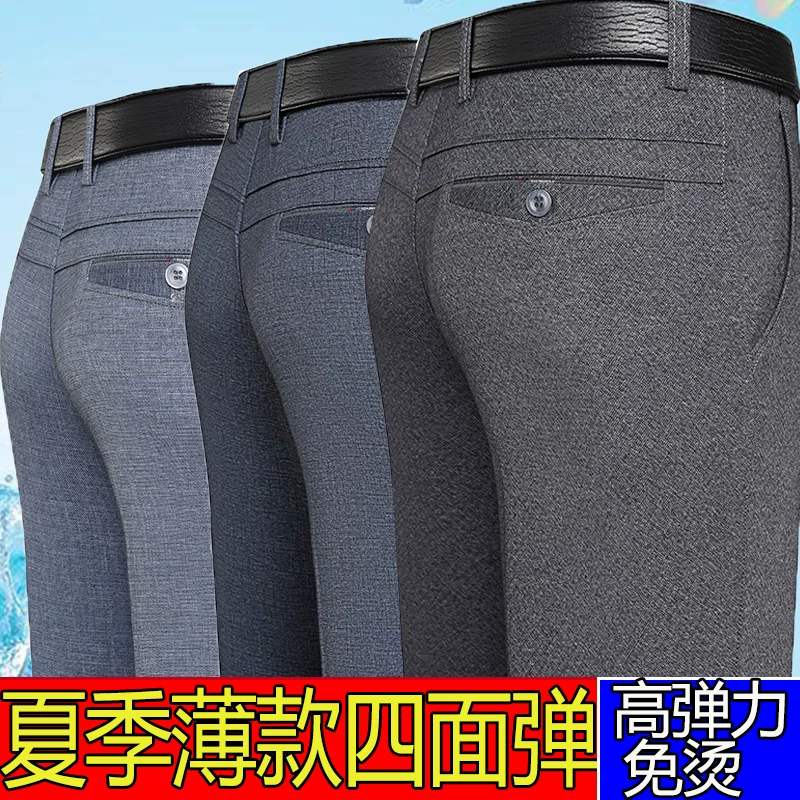 Mùa xuân và mùa hè Đàn ông trung niên quần tây quần thẳng nam quần co giãn bốn chiều quần dài quần mỏng nam 40 tuổi 50 cha quần dài - Quần