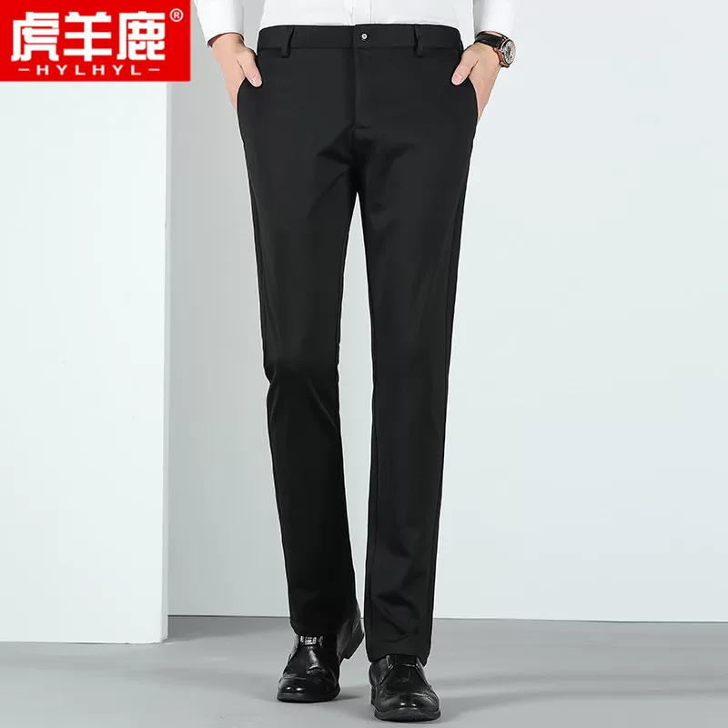 Đàn ông trung niên kinh doanh quần dài thẳng thẳng eo cao mùa thu căng quần giản dị - Quần