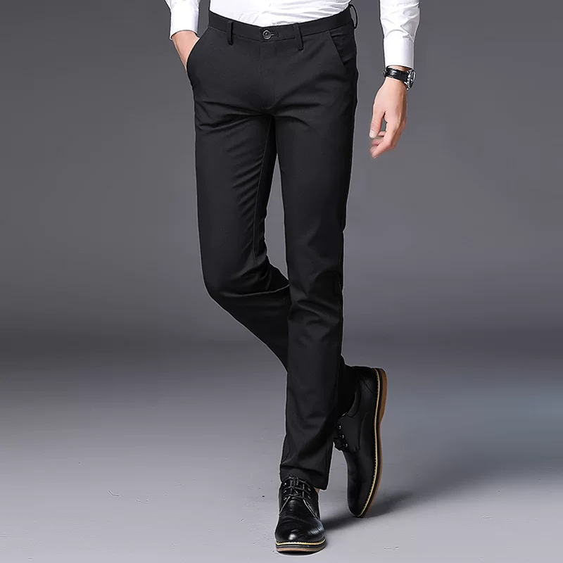 Quần chim phong phú quần dài mùa xuân và mùa thu dày phần kinh doanh thẳng căng mỏng phù hợp với quần sắt đen quần nam - Quần