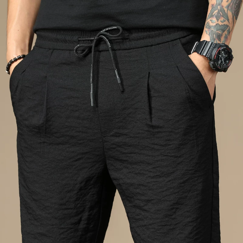 Quần mùa hè nam mỏng mảnh băng lụa tơ tằm đàn hồi eo siêu mỏng thể thao quần mùa hè quần âu nam - Quần mỏng