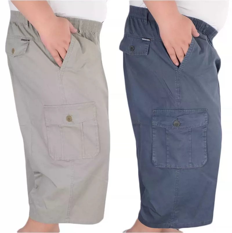 Quần nam mùa hè cộng với size cao eo sâu đáy quần cotton 7 điểm quần thể thao nhiều túi quần đi biển - Crop Jeans
