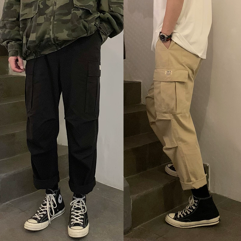 Rabbit Xiansen Quần áo bảo hộ lao động mùa xuân và mùa thu Quần nam Tide Thương hiệu Nhật Bản Retro skateboard Loose Straight Casual Casual Quần thường - 3/4 Jeans