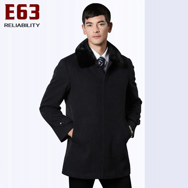 E63 mới của nam giới áo khoác len cổ lông đơn giản áo khoác len mùa thu và mùa đông vải len bên ngoài phù hợp với công việc áo gió phổ biến - Áo len