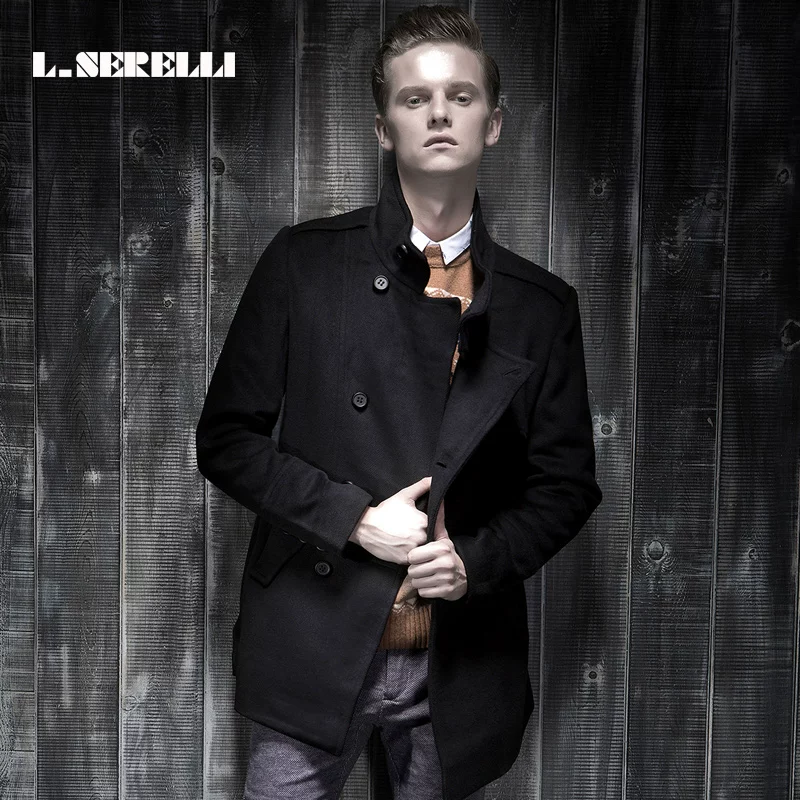 Y62. Áo khoác len nam thu đông của thương hiệu Louis 73% len Áo khoác ấm cổ đứng thẳng ngực dài cỡ trung - Áo len