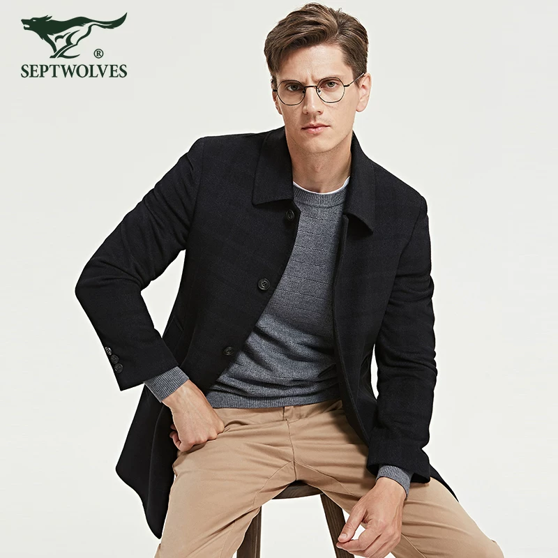 Bảy con sói áo khoác len nam áo khoác nam dài giữa mùa đông len ấm áp áo gió ve áo mỏng hàng đầu xu hướng - Áo len