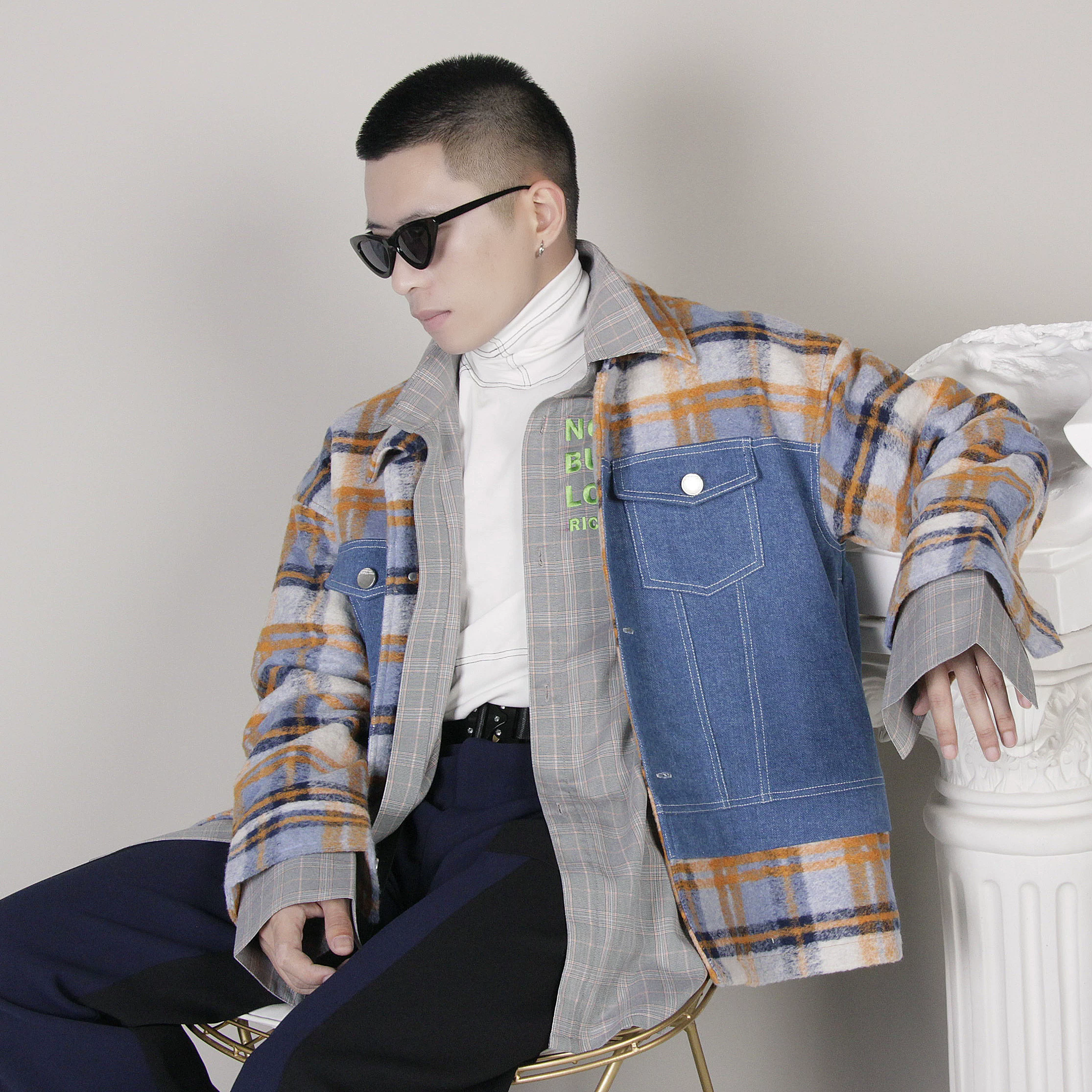 RICCIWEE thiết kế ban đầu denim khâu sọc kẻ sọc áo khoác len cổ điển áo khoác nam mùa thu và mùa đông phiên bản giới hạn - Áo len