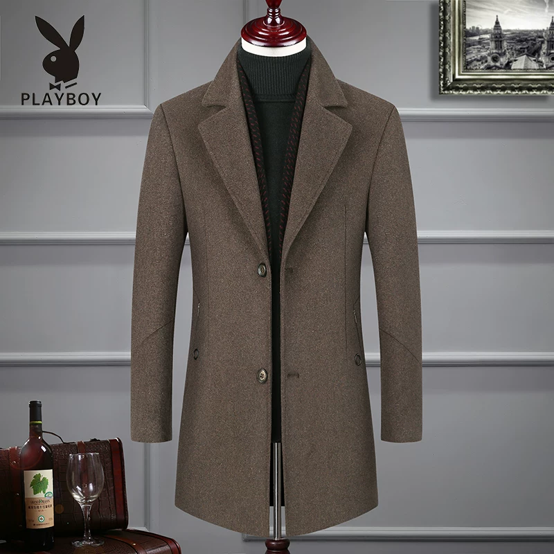Playboy chính hãng mới mùa đông trung niên nam áo khoác ngắn áo khoác len ấm áp xu hướng giản dị - Áo len