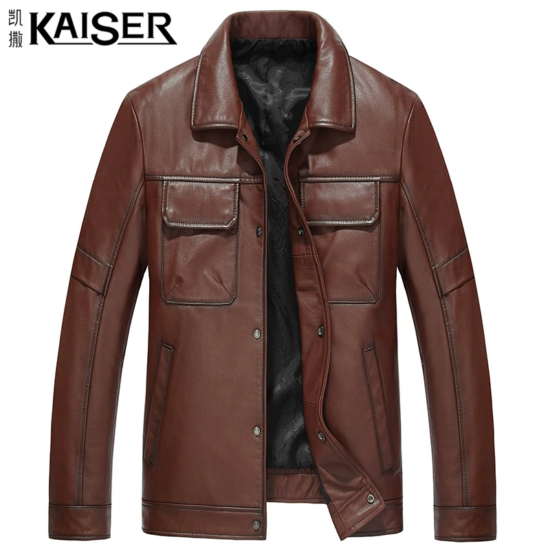 Kaiser / Kaiser ngắn ve lông một chiếc áo khoác da nam da dê Áo khoác mùa đông - Quần áo lông thú