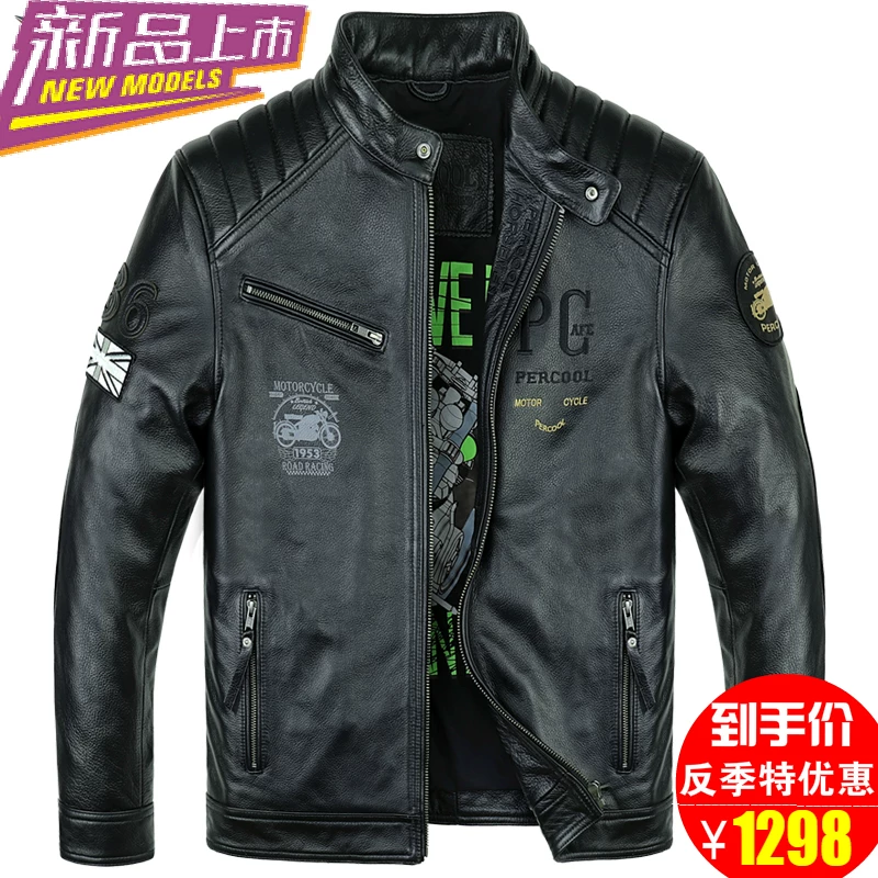 PERCOOL nam thời trang trẻ trung da da lớp trên cùng da bò đau khổ áo khoác da xe máy ngắn áo khoác thu đông - Quần áo lông thú