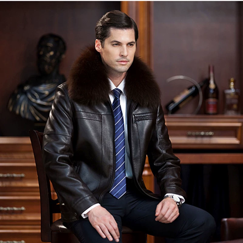 Áo khoác da nam dài trung niên có ve áo của Kaiser / Kaiser Áo khoác gió da bò lớp thứ nhất Haining - Quần áo lông thú