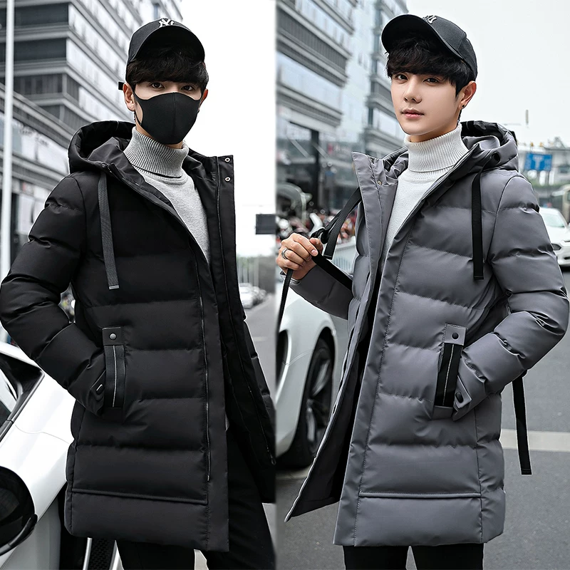 Cle clear Semir dài cotton Jacket Nam mùa đông xu hướng Hàn Quốc có mũ trùm đầu Áo khoác đen Thanh niên ấm áp nam giới ba màu - Áo vest cotton