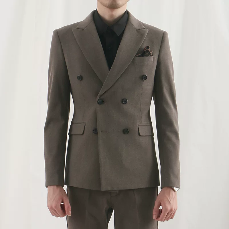 ZBTO mùa thu và mùa đông nặng retro săn bắn lạc đà nâu xương cá len dày vải tuýt bộ đồ nam mỏng vừa vặn - Suit phù hợp