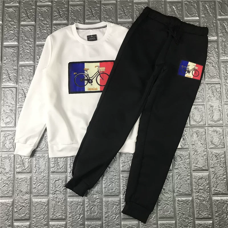 Nam giới giản dị bộ đồ thể thao mùa xuân và mùa thu Hàn Quốc áo len chui đầu có mũ sinh viên thủy triều thương hiệu hai mảnh phù hợp với nam giới - Bộ đồ