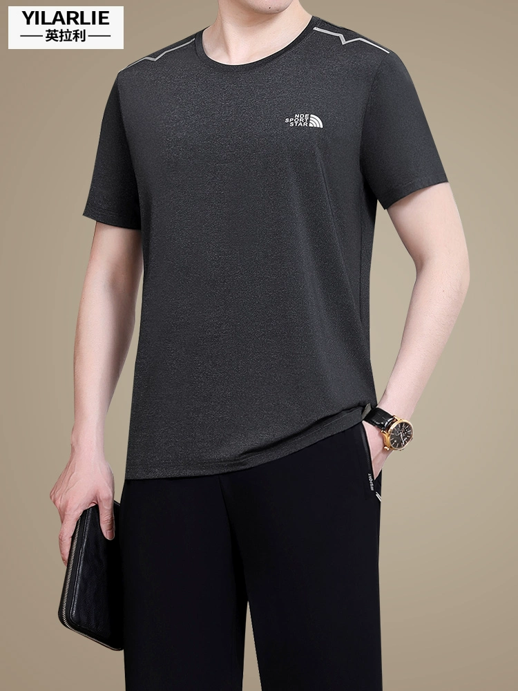 361 thương hiệu cao cấp tích cực cha phù hợp với mùa hè của nam giới giản dị áo phông ngắn tay cho người trung niên và người cao tuổi bộ đồ thể thao mỏng mùa hè - Bộ đồ