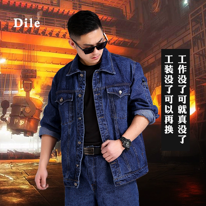 Quần yếm hàn chống bỏng bằng cotton, quần yếm denim, bộ quần áo bảo hiểm lao động nam, vỏ chống bỏng dày chống mài mòn của thợ hàn. - Bộ đồ