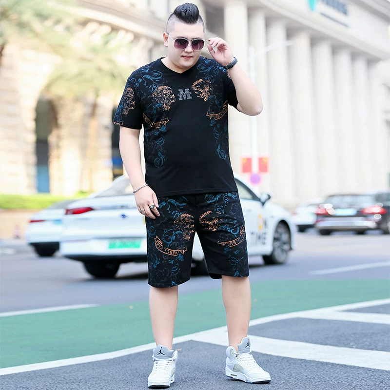 Bộ đồ nam mùa hè plus size phiên bản Hàn Quốc của xu hướng quần short ngắn tay plus dành cho người béo để tăng độ thoáng khí cho quần áo - Bộ đồ